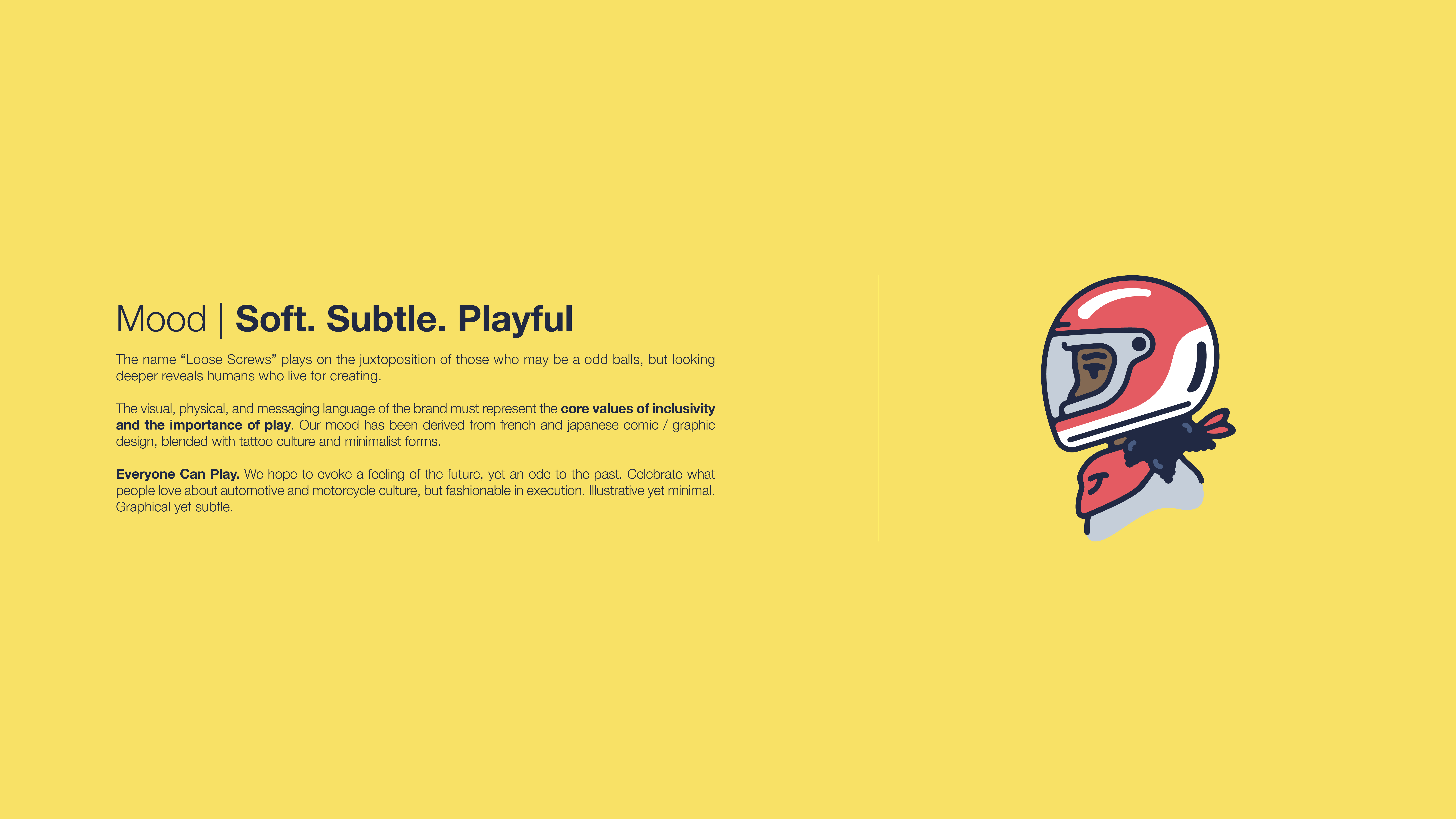 Concept Brand. Utilizing Design and Storytelling to build a more playful, inclusive form of auto and moto culture.